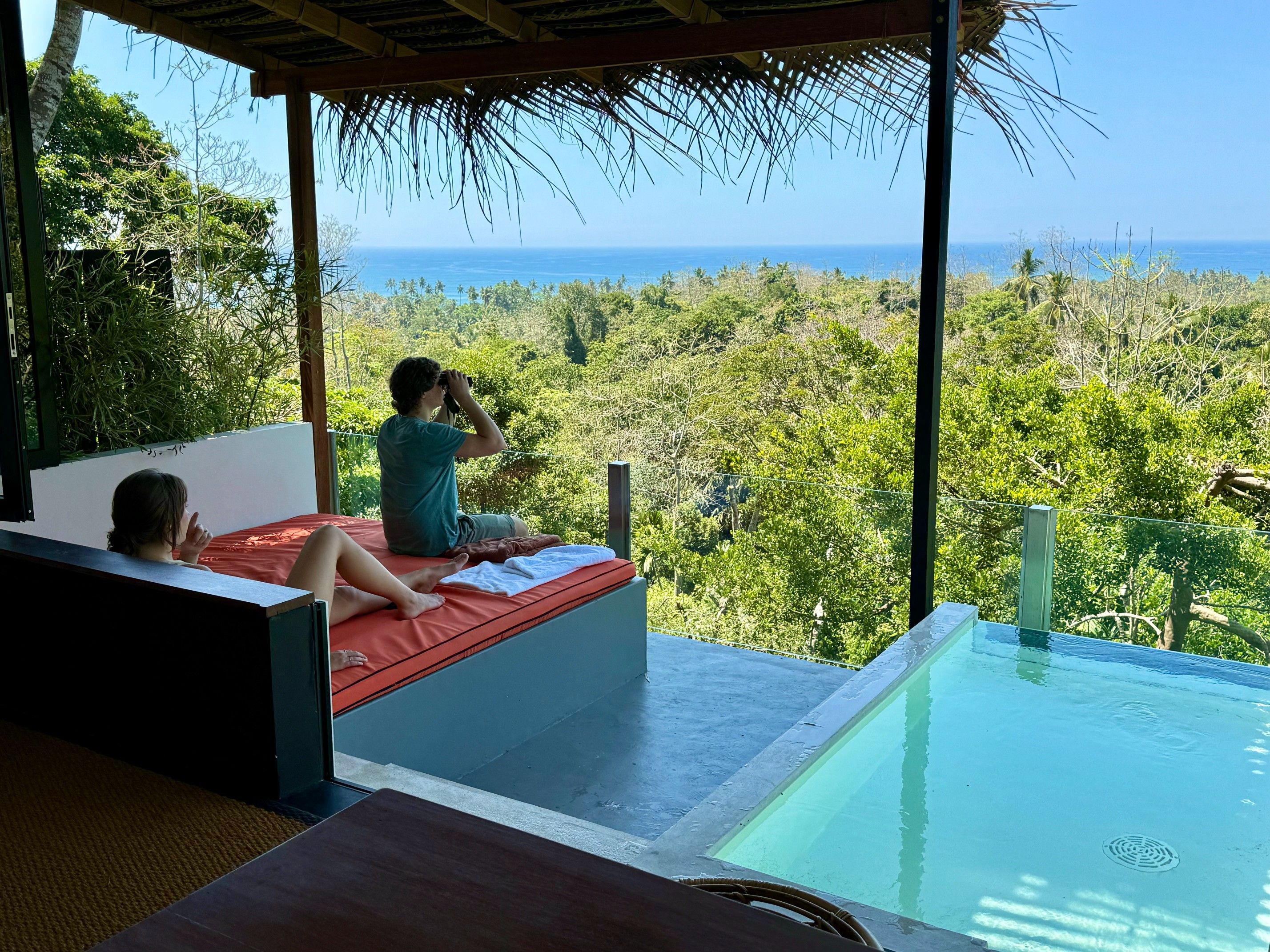 Binoculars are provided in the suite, encouraging guests to observe the surrounding wildlife and distant ocean activity. This subtle detail reinforces the idea that the suite is not just a place to stay, but a place to observe and connect with nature in detail.